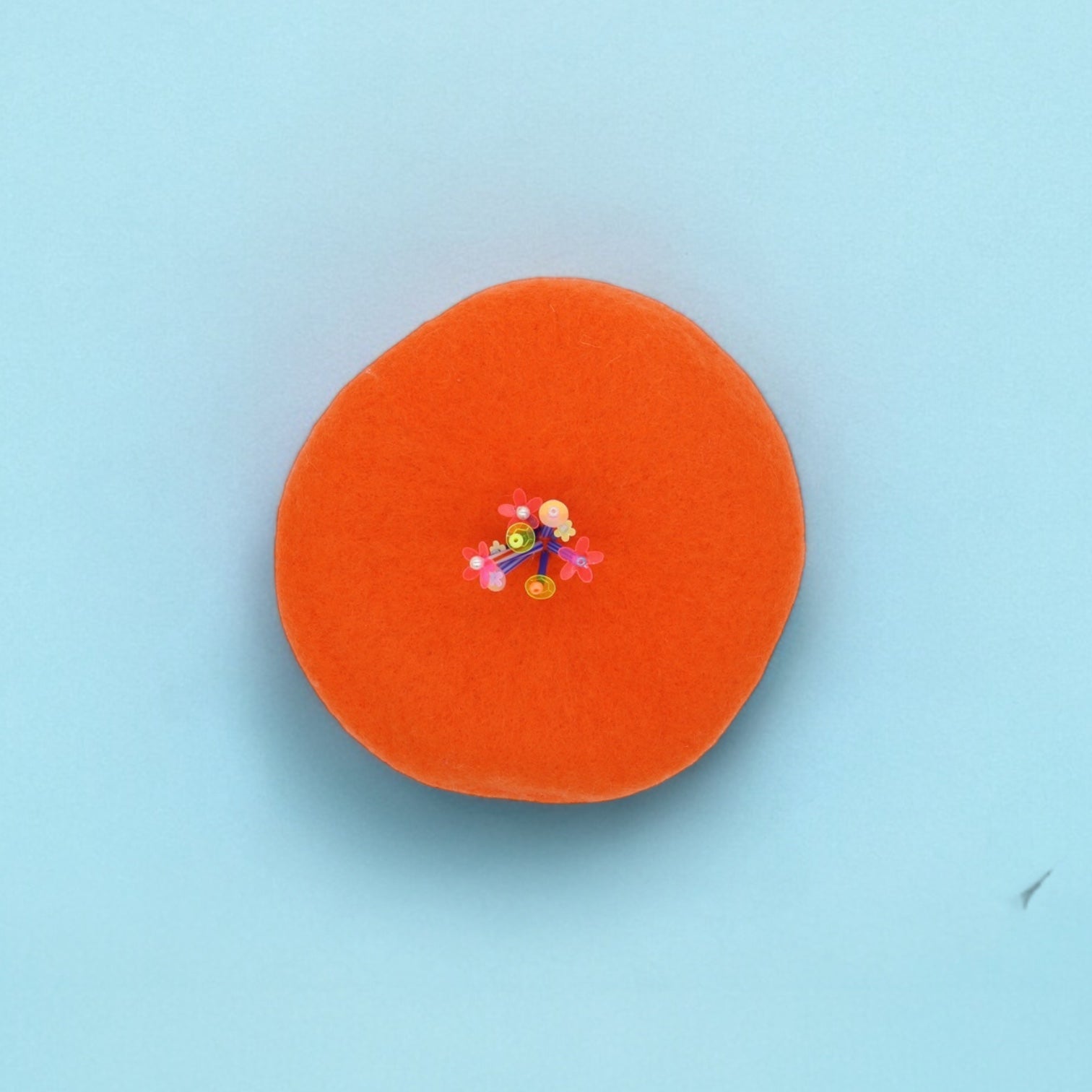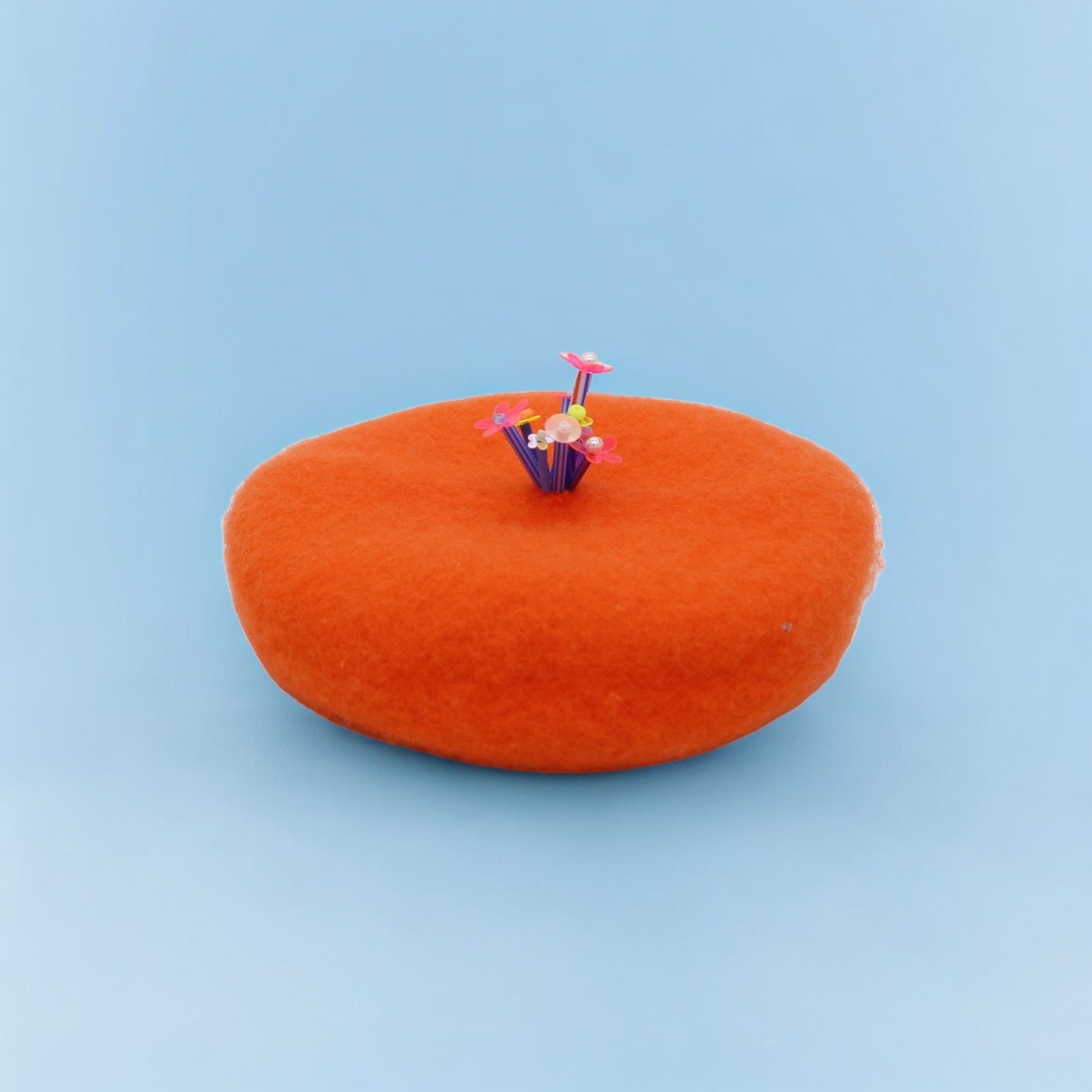 Adorned with delicate, colorful floral accents at the top, this beret brings a touch of elegance and playfulness. The flowers are intricately designed to add a whimsical charm to your pet’s look.
